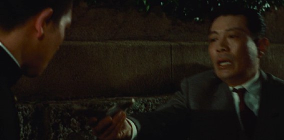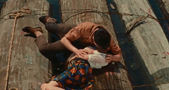 Фильм 白昼の通り魔 (хакутю: но то:рима), «Насилие в полдень» (1966) углубляет исследование кризиса через образ Эйсукэ, чья неспособность соответствовать идеалам мужественности приводит к моральной деградации. Убийство в этом фильме символизирует не только физическое насилие, но и утрату невинности и идеализма. Эйсукэ, разочарованный социопат, становится фигурой, связывающей двух женщин – Сино и Мацуко – через любовь и ненависть. Их попытки оправдать его действия отражают внутренний конфликт между личной привязанностью и осознанием морального краха (см. рисунки 4, 5). Осима использует этот образ для критики общества, в котором традиционные ценности разрушаются, оставляя мужчин в состоянии психологической нестабильности [12, с. 80].