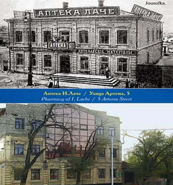 Рис. 3. Аптека Лаче в дореволюционный период и в современности