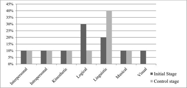 После эксперимента 40% отнесли себя к лингвистическому типу, при этом до начала работы 30% считали своим главным типом логический. В ходе эксперимента были проведены занятия, развивающие все виды интеллекта, однако приоритет оставался за языковыми навыками и интересом к иностранным языкам. Как показали ответы, приоритет достигнут: большинство учеников отмечают, что их речевые способности и интерес выросли сильнее, чем когда-либо ранее.