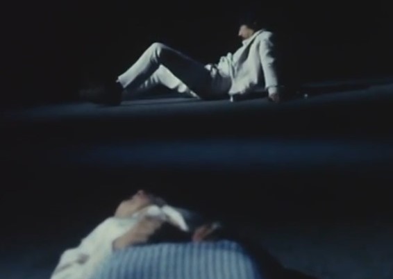Фильм 白昼の通り魔 (хакутю: но то:рима), «Насилие в полдень» (1966) углубляет исследование кризиса через образ Эйсукэ, чья неспособность соответствовать идеалам мужественности приводит к моральной деградации. Убийство в этом фильме символизирует не только физическое насилие, но и утрату невинности и идеализма. Эйсукэ, разочарованный социопат, становится фигурой, связывающей двух женщин – Сино и Мацуко – через любовь и ненависть. Их попытки оправдать его действия отражают внутренний конфликт между личной привязанностью и осознанием морального краха (см. рисунки 4, 5). Осима использует этот образ для критики общества, в котором традиционные ценности разрушаются, оставляя мужчин в состоянии психологической нестабильности [12, с. 80].
