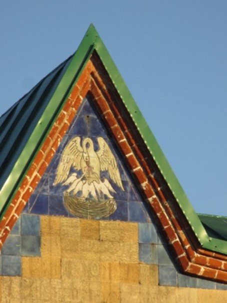 Рис. 10. Майоликовым панно с пеликаном в гнезде, кормящим птенцов [3]